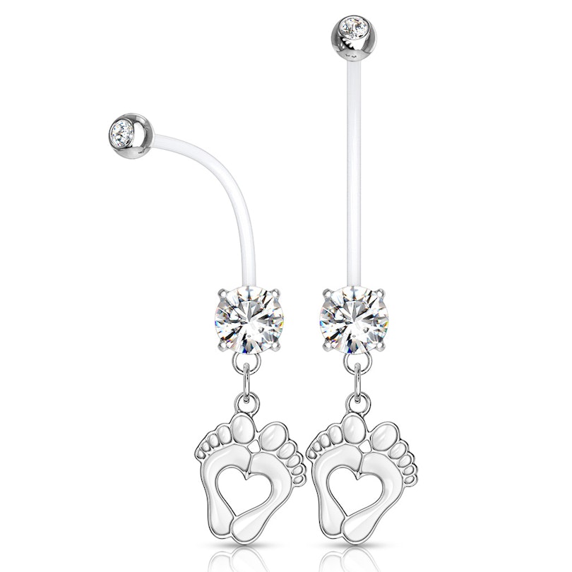 Piercing all'ombelico per donne incinte con piedi con foro a forma di cuore