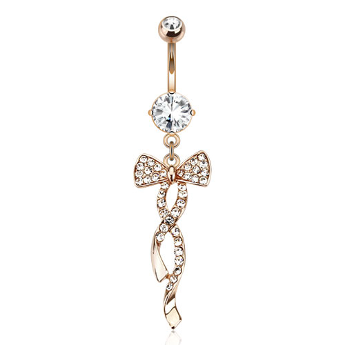 Nome: Piercing all'ombelico placcato d'oro rosso con fiocco e pietra