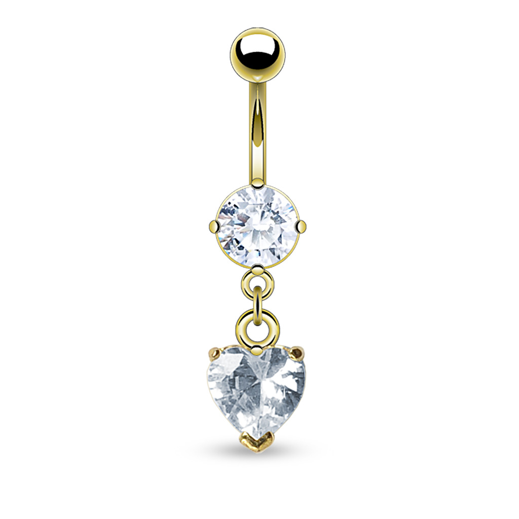 Piercing all'ombelico placcato in oro con pietra pendente a forma di cuore