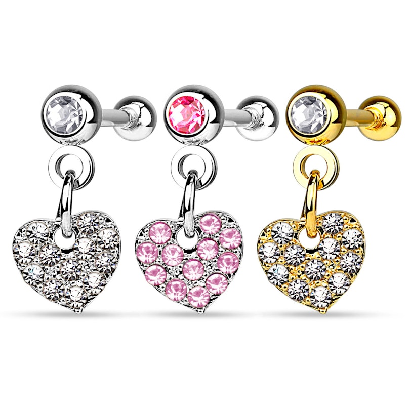 Piercing all'orecchio con pendente a cuore ricoperto di pietre
