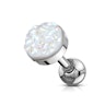 Qui si ottiene un piercing all'orecchio piccolo e discreto con una grande personalità. Il gioiello misura 6 mm. A lungo termine, ha una palla in alto con lo stesso obiettivo, ma quello che è nella palla in alto conferisce al gioiello una grande spinta di vedetta. La palla in alto è stata equipaggiata con il nome di una pietra druzy, che non è una pietra ma una superficie più vicina di piccoli cristalli.