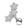Piercing all'orecchio con tre fiori in pietra posti in fila