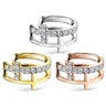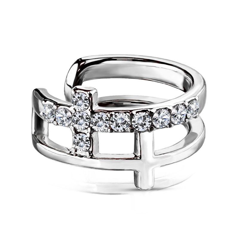 Sul gioiello ci sono due croci, una con piccole pietre chiare, mentre l'altra senza pietre - le due croci siedono una affianco all'altra sul lato del gioiello che siederà nella parta anteriore dell'orecchio, cioè la parte visibile. Le pietre su una sola delle due croci aggiungono anche un tocco di eleganza e brillantezza al gioiello,soprattutto quando la luce le colpisce e le pietre iniziano a rifletterla.