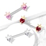 Stai cercando un gioiello unico che dia un tocco scintillante ai tuoi capezzoli? Sentiti una principessa con questa barra per capezzolo che ha due cuori e due corone! Questa barra filettata esternamente ha una lunghezza di 14 mm e un diametro del filo di 1,6 mm. Ha una corona realizzata in ottone a ognuna delle estremità. Puoi scegliere il colore della corona fra tre opzioni splendide ed eleganti. Sotto ciascuna corona si trova una pietra brillante a forma di cuore anch'esso disponibile in vari colori.