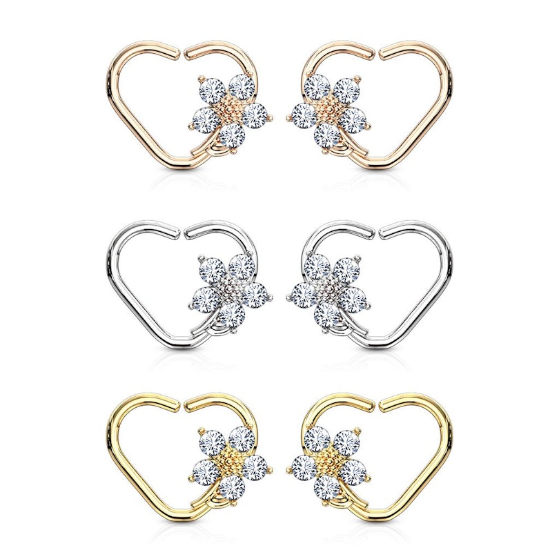 Nome: Piercing per l'orecchio a forma di cuore con fiore