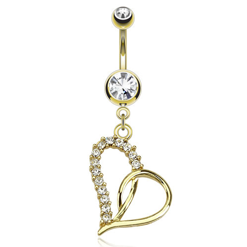 Piercing per l'ombelico placcato d'oro con pendente a forma di cuore con pietre trasparente