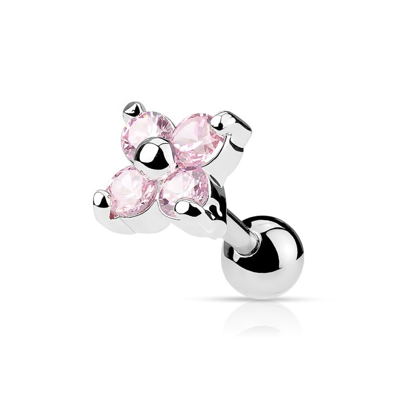 La barra da piercing di questo gioiello da piercing è di 6 mm. che è la lunghezza standard per un piercing all'orecchio. Le misure del fiore sono 8 mm per 8 mm da lato a lato.