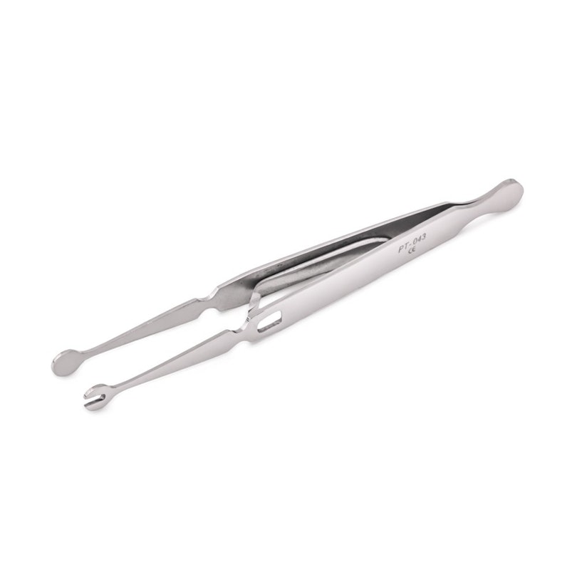 Questo è uno strumento indispensabile per chi ha a che fare con i labret, specialmente al trago e altre zone difficili. Con l'aiuto di queste pinze con una punta scanalata e una piatta, puoi facilmente afferrare i labret, soprattutto nelle aree dalla fisionomia delicata.