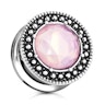 La parte frontale di questo plug è rivestita di un grigio brillante anticato. Da questo deriva il colore scuro, come puoi vedere nell'immagine, colore che mette in evidenza la pietra rosa. Intorno alla pietra rosa ci sono un sacco di piccole sfere che danno profondità al gioiello e esaltano la sua bellezza.