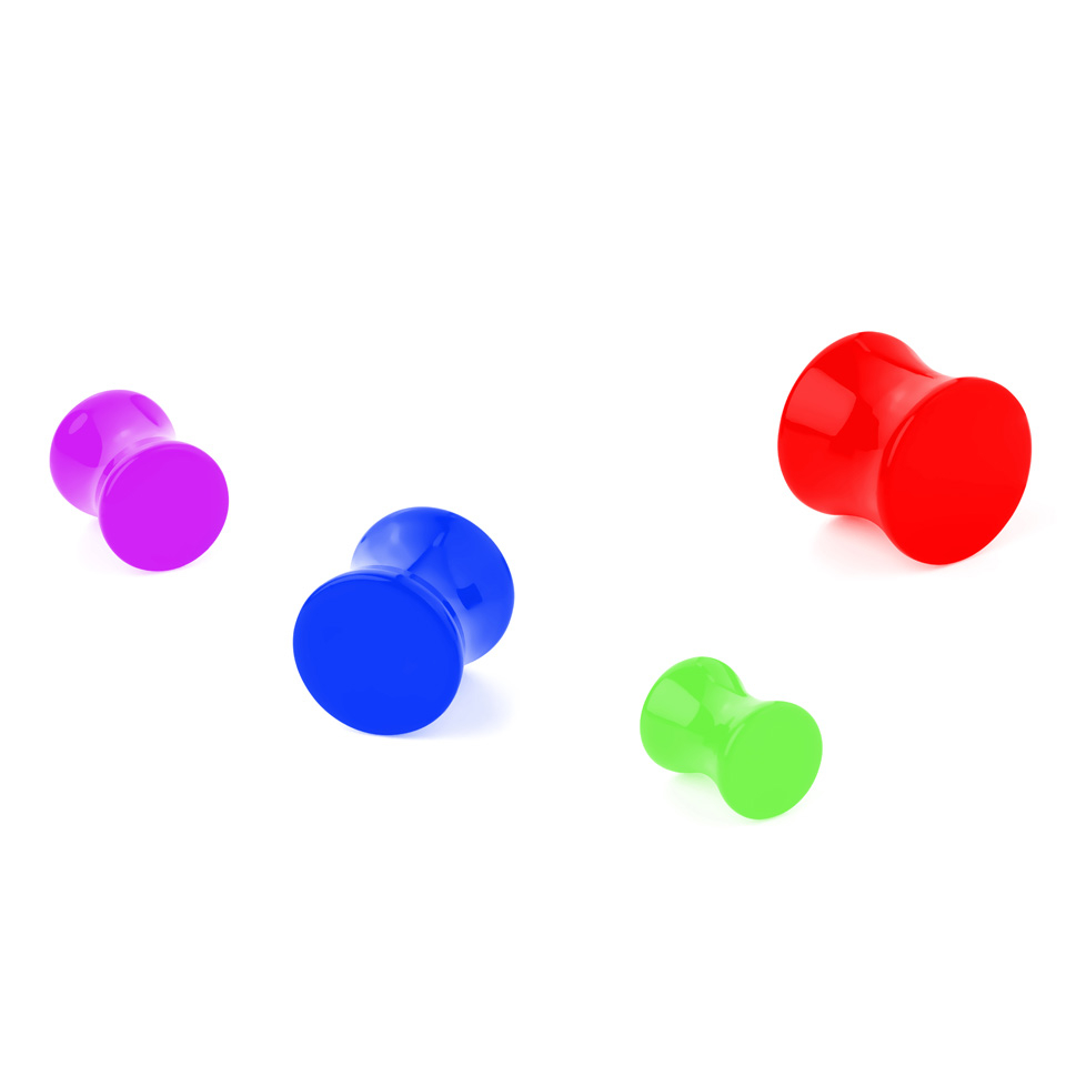 Questo plug sembra un doppio flared plug, senza bordi appuntiti e che in seguito è stato lucidato per dargli una bella finitura. Il modello è disponibile in misure dai 3 fino ai 25 mm e come puoi vedere dall'immagine soprastante, puoi trovarlo in un mare di colori differenti.