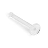Questo retainer per naso è fatto in plastica trasparente e consiste in una barra spessa 0,8 mm. e lunga 7. Nella parte posteriore di questa barra si trova una piccola sfera, leggermente più spessa del resto della barra. La sfera funziona come un gancio che mantiene il retainer nel proprio posto ed evita che questo cada. Dalla parte opposta, ovvero nella parte frontale del gioiello, si trova un piccolo piatto con un diametro di 2 mm. Le dimensioni di questo piatto non sono molto grandi per fare in modo che possa sdraiarsi sulla superficie del naso, senza attrarre l'attenzione.