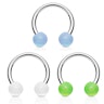 Qui abbiamo per te un favoloso set di tre barre circolari con tre sfere di diversi colori fluorescenti. La barra è realizzata in acciaio chirurgico, le sfere in acrilico. Si illumineranno al buio se prima vengono esposte alla luce di una lampada.