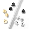 Dal momento che la base del disco è piatta, questa va a contatto con la pelle. Il disco è disponibile in due diverse dimensioni e in tre diversi colori, come puoi vedere nell'immagine sopra. Le dimensioni sono rispettivamente di 2 e di 3 mm di diametro.