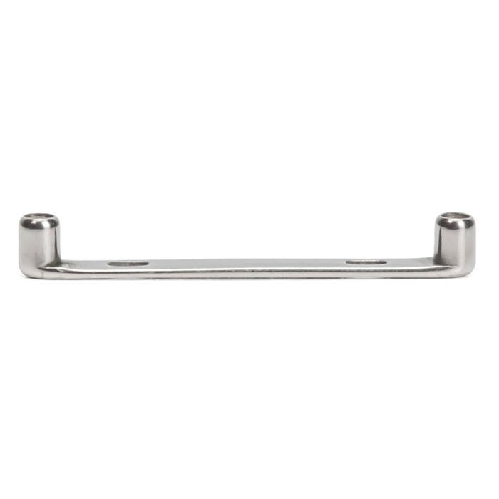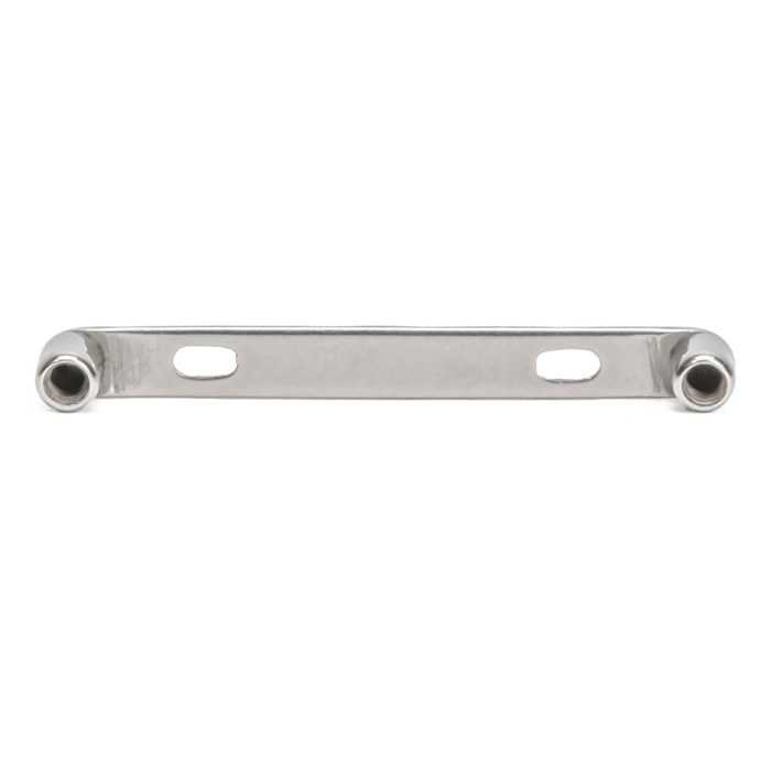 Questa surface bar è fatta di puro titanio. La barra è quasi piatta - spessa meno di 0,5 mm. e larga circa 2 mm ed è dotata di due parti curve a 90°, una per ciascuna delle estremità. L'altezza di ognuna di queste curvature è di 2 mm. e si ha la possibilità di avvitarci sfere all'interno. La filettatura di queste estremità è adatta ai comuni dermal anchor. Questo vuol dire che la filettatura ha un diametro esterno di 1,6 mm. e un diametro interno di 1,2 mm. Presta attenzione al fatto che la barra è adatta soltanto ai dermal e non alle comuni sfere da 1,2 mm. con filettatura esterna.