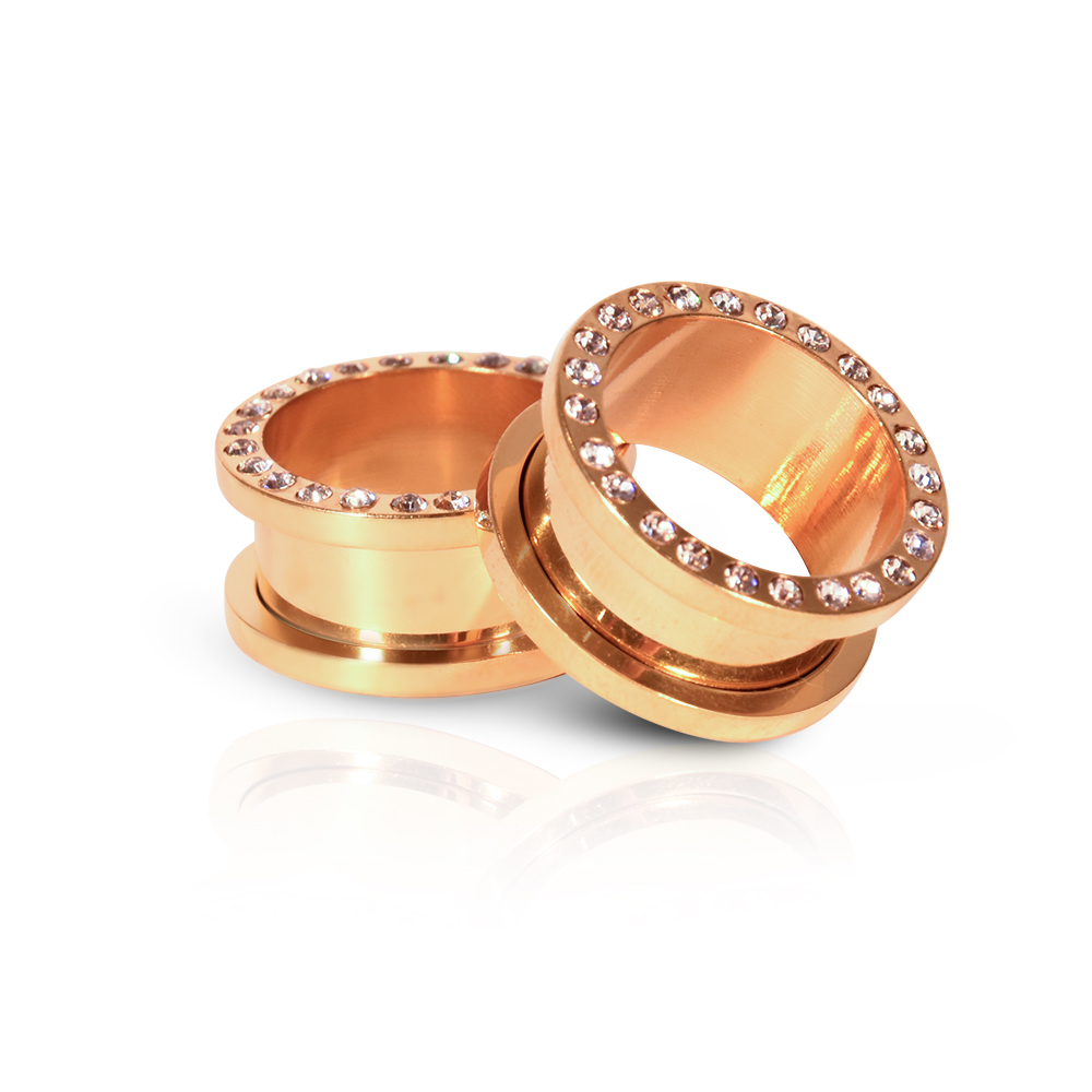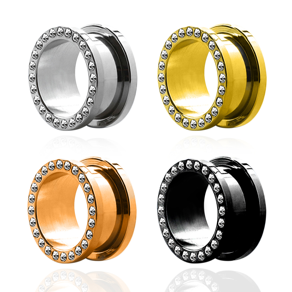 É realizzato in acciaio chirurgico, e tutti i modelli sono placcati con diversi rivestimenti per ottenere i colori che trovi disponibili. Puoi, ad esempio, averlo in colore nero o con un tono dorato. É dotato di filettatura per un facile inserimento: svita la parte posteriore, fai scivolare il tunnel nell'orecchio, torna ad avvitala ed il gioco è fatto.