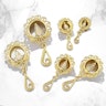 Il tunnel che vedi sopra è disponibile in due versioni: un modello grigio brillante e l'altro colore oro. Sono identici al 100% ad eccezione del colore. Entrambi sono disponibili di diverse misure di diametro che vanno dai 6mm ai 16mm. Le misure della goccia e di tutto il gioiello cambiano proporzionalmente al diametro che selezioni.