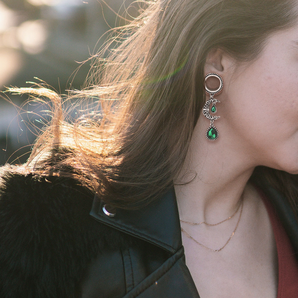 Tunnel con pendente con pietre in filigrana e pietre verdi