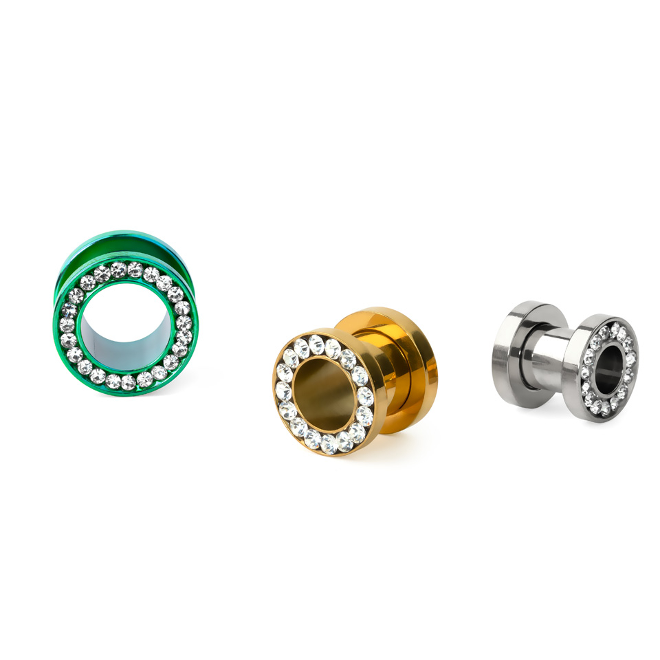 Scopri questo delizioso tunnel in stile classico fatto in acciaio chirurgico, disponibile qui in un vasto assortimento di misure e combinazioni di colori. Caratteristica comune a tutti i modelli è che i bordi sono occupati da piccole pietre con sfaccettature che creano un perfetto cerchio e brillano in modo perfetto quando la luce le colpisce. Qui ci sono modelli per tutte le esigenze e per tutte le dimensioni di dilatazione.