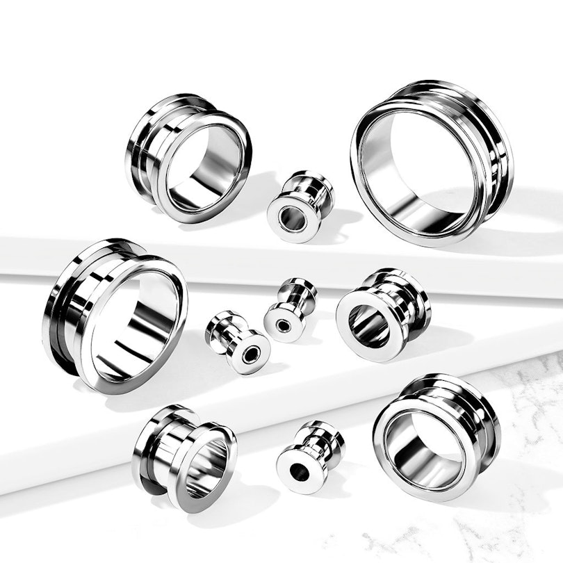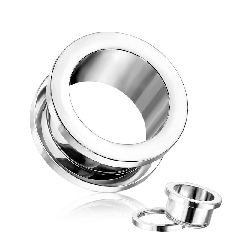 Il tunnel, come suggerisce il nome, presenta una filettatura. Questo significa che il retro del tunnel può essere svitato, così da essere inserito e rimosso facilmente. E' disponibile in dimensioni che vanno dai 3 mm fino ai 25 mm. Consigliamo di indossare gioielli in titanio in ogni nuova dilatazione, dato che durante il processo possono insorgere complicazioni. Il titanio è un materiale eccellente per la sua igiene - infatti raccomandiamo il titanio per qualsiasi piercing appena fatto.