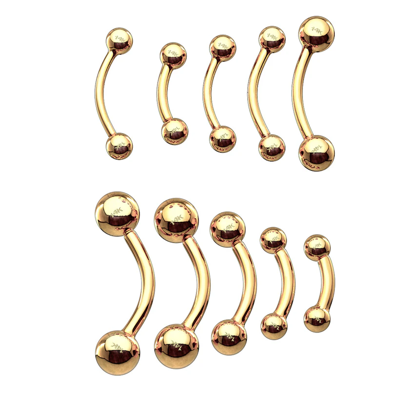 Le barre curve sono eccezionali perché possono essere usate in tanti piercing diversi. Tuttavia, tieni a mente che devi scegliere le misure adatte al tuo piercing. Sono normalmente utilizzate in piercing al capezzolo, al sopracciglio, rook, daith e piercing intimi. Se vuoi indossarla, ad esempio, nel piercing al sopracciglio, probabilmente dovrai scegliere lo spessore di 1.2 mm.