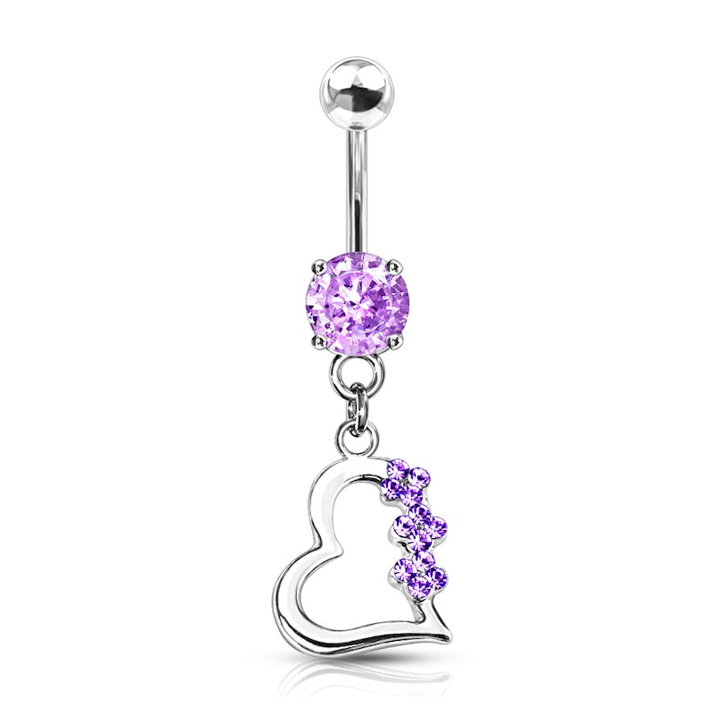 Piercing all'ombelico in titanio con ciondolo a cuore tempestato di pietre.