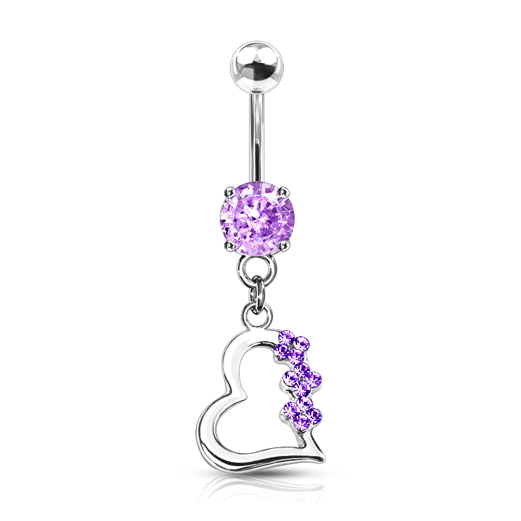 Nome: Piercing all'ombelico in titanio con ciondolo a cuore tempestato di pietre.