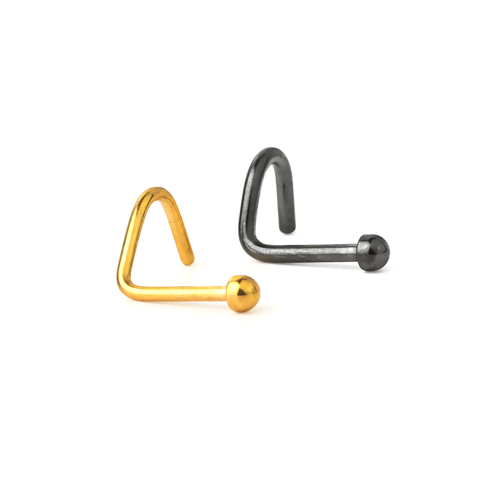 La forma è ideale per chi cambia spesso gioiello. Inserisci la parte finale dell'asta nel tuo piercing e ruotala leggermente per fissarla alla parte interna della tua narice.