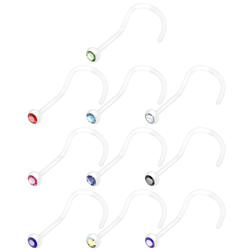 Anche tu sogni di trovare un gioiello da naso che sia bello, comodo e pratico allo stesso tempo? Allora qui hai la possibilità di trasformare in realtà il tuo sogno. Questo ci permette di presentarti una vite da naso di PTFE disponibile in diversi colori che ha tutto quello che si chiede a un gioiello da naso. Così come accennato nel nome del prodotto, questa vite da naso è fatta di PTFE, un materiale flessibile ed estremamente comodo da utilizzare. Inoltre il PTFE non contiene nichel ed è pertanto un materiale sicuro anche per quelli che soffrono di allergia al nichel.